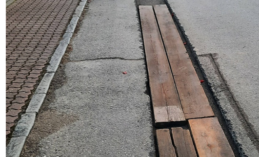 Von der Baufirma wurden selbstverständlich Vorkehrungen getroffen, damit der Verkehrsfluss nach den Fräsarbeiten aufrecht erhalten bleibt. (Pfosten in den Künetten, jedoch nur in den tatsächlich notwendigen Bereichen bei Einfahrten)