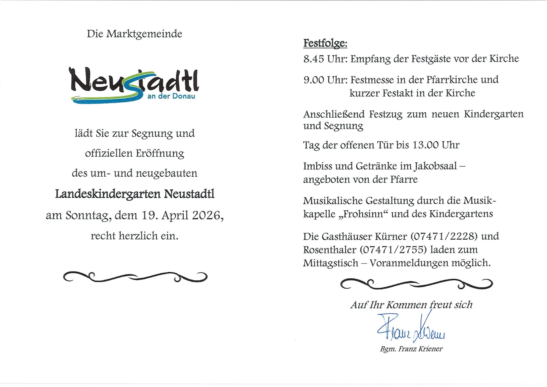 offizielle Eröffnungsfeier - Um-/Zubau Landeskindergarten Neustadtl