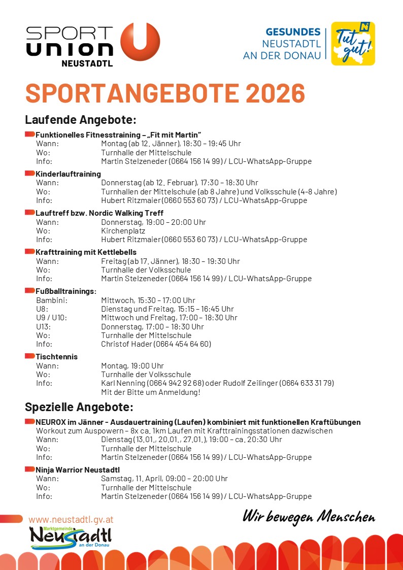 Sportangebote 2026 - Sportunion & Gesundes Neustadtl