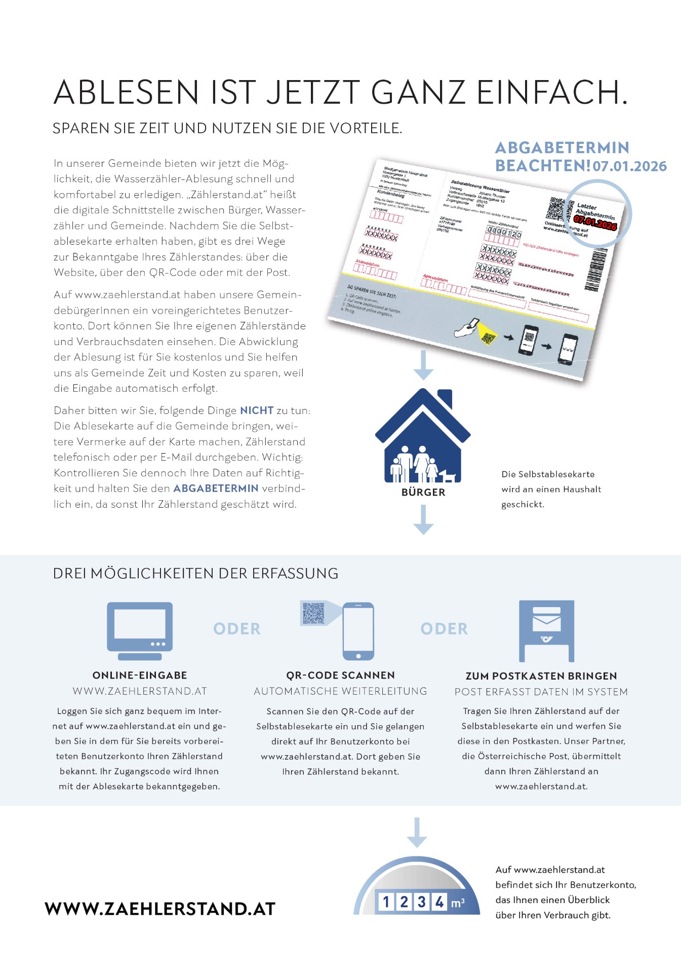Die Ablesekarten werden zentral versandt und vorraussichtlich ab 20. Dezember 2025 in Ihrem Haushalt einlangen.